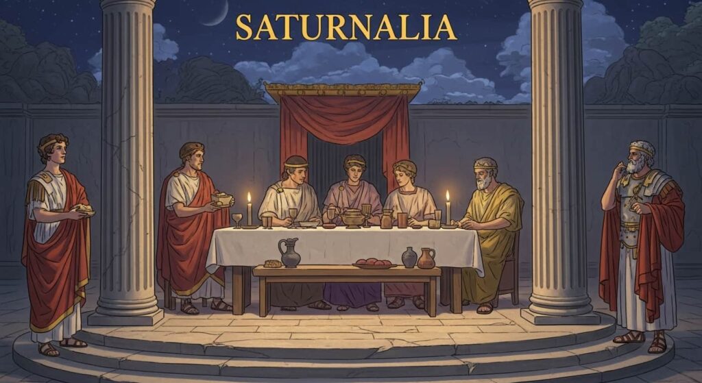 Em Roma, a semana que antecedia o solstício de inverno era dominada pela Saturnália, um dos festivais mais importantes e alegres do calendário. Dedicada a Saturno, o deus da agricultura e da colheita, a celebração começava em 17 de dezembro e podia se estender por até sete dias.