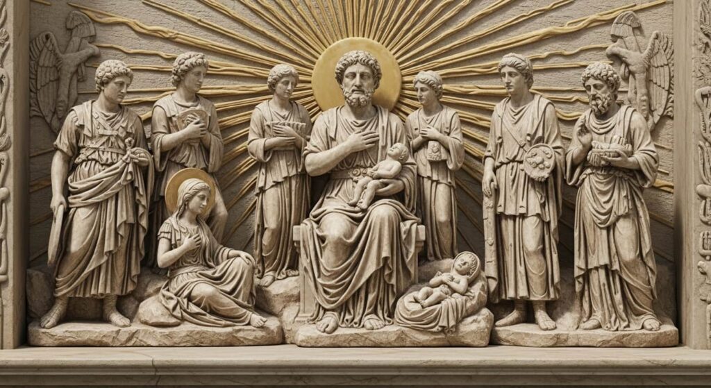 A data de 25 de dezembro carregava um peso simbólico profundo no Império Romano, muito antes da decisão da Igreja. Neste dia, celebrava-se o Dies Natalis Solis Invicti, ou “o nascimento do Sol Invicto”. Este culto, promovido por imperadores como Aureliano no século III, unificava diversas divindades solares em uma única figura poderosa, cujo renascimento coincidia com o momento em que os dias começavam a ficar mais longos após o solstício.